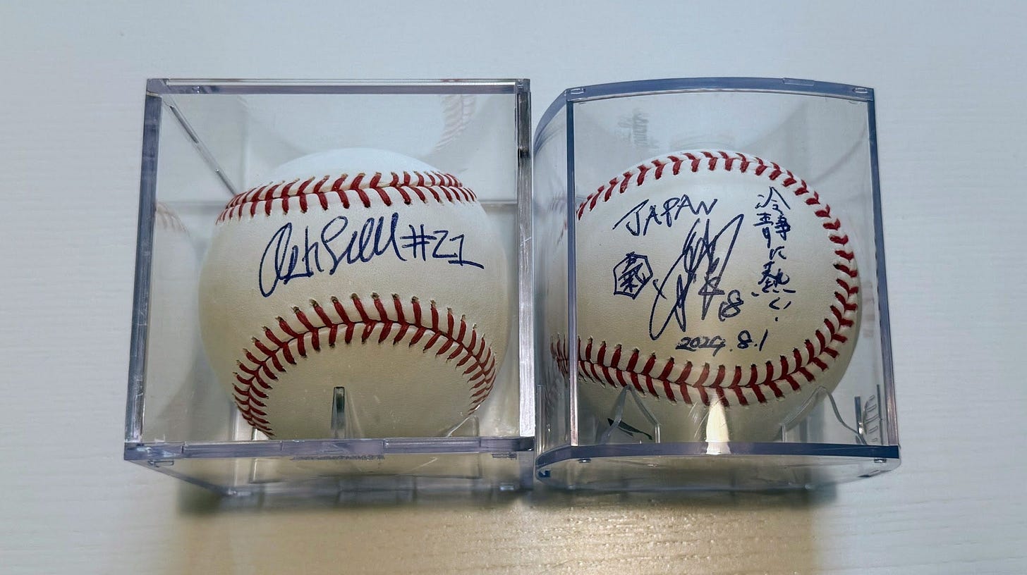 I was lucky enough to meet RHP Ayami Sato and 3B Ashton Lansdell at the 2024 Women’s Baseball World Cup in Thunder Bay, Ontario. Both were kind enough to sign a baseball for me. I had been a fan of Lansdell since I got to watch her play a scrimmage in my hometown the year prior. I first learned about Sato after we made the decision to buy World Cup tickets, and to have all that hype and excitement pay off with a chance encounter was amazing.